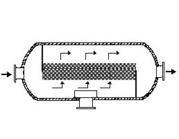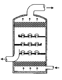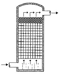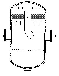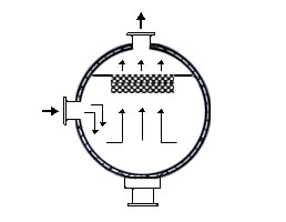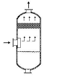 在通常的化工操作中所碰到的氣體中分散液滴的直徑約在0.1~5000μm。一般粒徑在100μm以上的顆粒因沉降速度較快,其分離問(wèn)題很容易解決。通常直徑大于50μm的液滴,可用重力沉降法分離;5μm以上的液滴可用慣性碰撞及離心分離法;對(duì)于更小的細(xì)霧則要設(shè)法使其聚集形成較大顆粒,或用纖維過(guò)濾器及靜電除霧器。絲網(wǎng)除沫器,其主要用于分離直徑大于3μm~5μm的液滴,工作原理如右圖所示。當(dāng)帶有霧沫的氣體以一定的速度上升,通過(guò)架在格柵上的金屬絲網(wǎng)時(shí),由于霧沫上升的慣性作用,使得霧沫與細(xì)絲碰撞而粘附在細(xì)絲的表面上。細(xì)絲表面上的霧沫進(jìn)一步擴(kuò)散及霧沫本身的重力沉降,使霧沫形成較大的液滴沿著細(xì)絲流至它的交織處。由于細(xì)絲的可濕性、液體的表面張力及細(xì)絲的毛細(xì)管作用,使得液滴越來(lái)越大,直至其自身的重力超過(guò)氣體上升的浮力和液體表面張力的合力時(shí),就被分離而下落,流至容器的下游設(shè)備中。只要操作氣速等條件選擇得當(dāng),氣體通過(guò)絲網(wǎng)除沫器后,其除沫效率可達(dá)到97%以上,可以達(dá)到完全去除霧沫的目的。絲網(wǎng)除沫器(除霧器)用于分離塔中氣體夾帶的液滴,以保證有傳質(zhì)效率,降低有價(jià)值的物料損失和改善塔后壓縮機(jī)的操作,一般多在塔頂設(shè)置絲網(wǎng)除沫器。可有效去除3--5um的霧滴,塔盤(pán)間若設(shè)置除沫器,不僅可保證塔盤(pán)的傳質(zhì)效率,還可以減小板間距。所以絲網(wǎng)除沫器主要用于氣液分離。亦可為空氣過(guò)濾器用于氣體分離。此外,除沫器絲網(wǎng)還可作為儀表工業(yè)中各類儀表的緩沖器,以防止電波干擾的電子屏蔽器等。在化工工藝過(guò)程中,各種氣液相接觸設(shè)備的氣體離開(kāi)設(shè)備時(shí)往往夾帶著不少液滴,如塔類設(shè)備、蒸發(fā)器等。一般要求把氣體中夾帶的液滴分離出來(lái),以免影響氣體的品質(zhì)或下道工序的操作。從氣體分離液滴或霧沫的機(jī)理有重力下降、慣性碰撞、離心分離、布朗運(yùn)動(dòng)的擴(kuò)散沉積和靜電吸引。絲網(wǎng)除沫器是屬于慣性碰撞除沫中的典型產(chǎn)品,是一種高效的氣液分離設(shè)備。它具有除沫效率高、結(jié)構(gòu)簡(jiǎn)單、空隙率大、壓力降小、重量輕,安裝、操作、維修方便等特點(diǎn)。當(dāng)氣體自下而上通過(guò)絲網(wǎng)除沫器時(shí),由于慣性作用與絲網(wǎng)表面碰撞,霧沫隨即在細(xì)絲表面聚集而擴(kuò)張,不斷變大的液滴由于重量產(chǎn)生的重力超過(guò)氣速和液體表面的張力的合力時(shí),液滴就下落。工業(yè)上常用于塔器、蒸發(fā)器和分離器等。